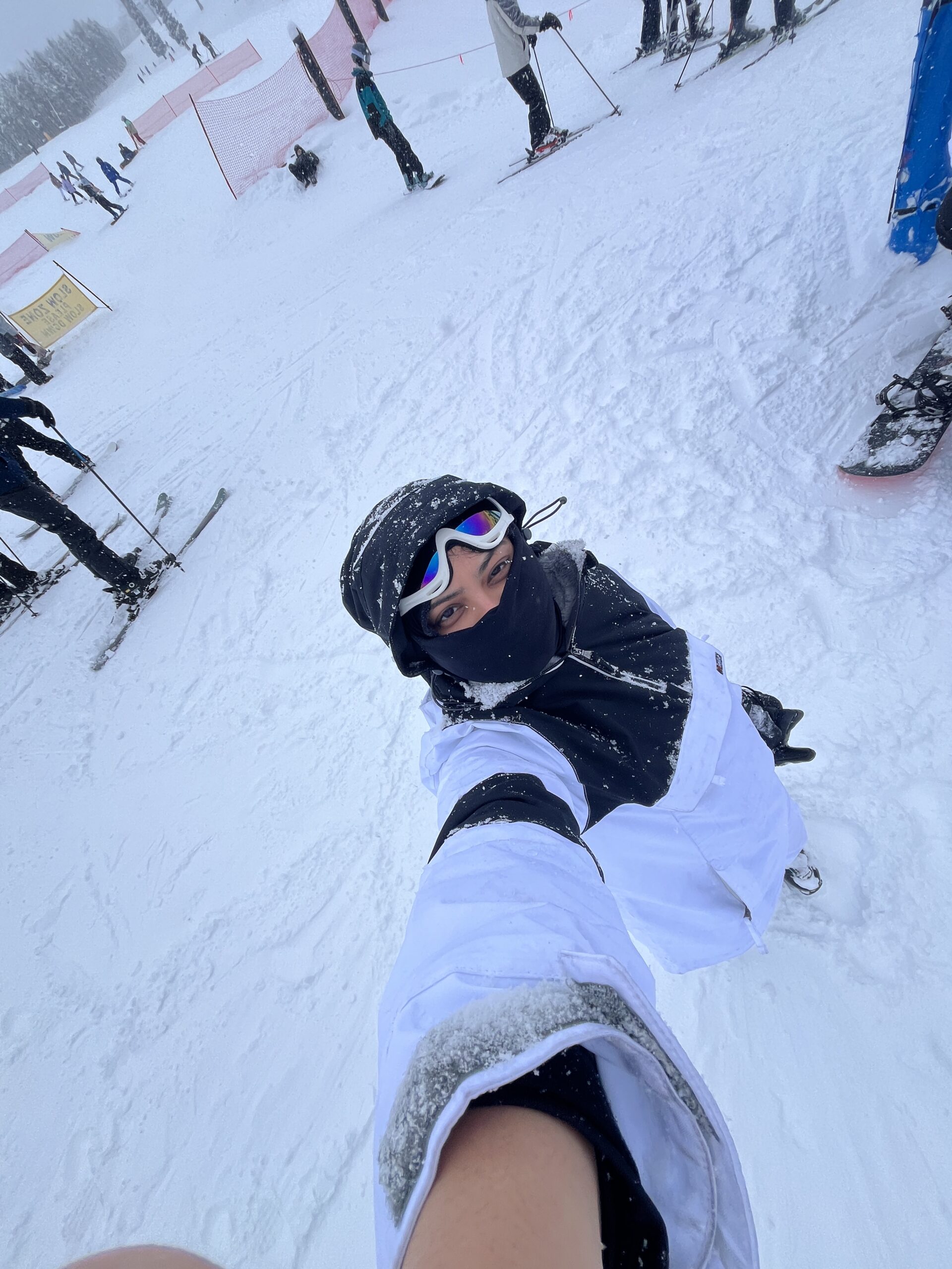The next morning was a powder day. For those who don’t ski — powder day means it’s snowing, the slopes are fluffy, and apparently, it is harder to ski. I had booked an introductory lesson with a pro. I had full confidence going in. The mountain returned it to sender.